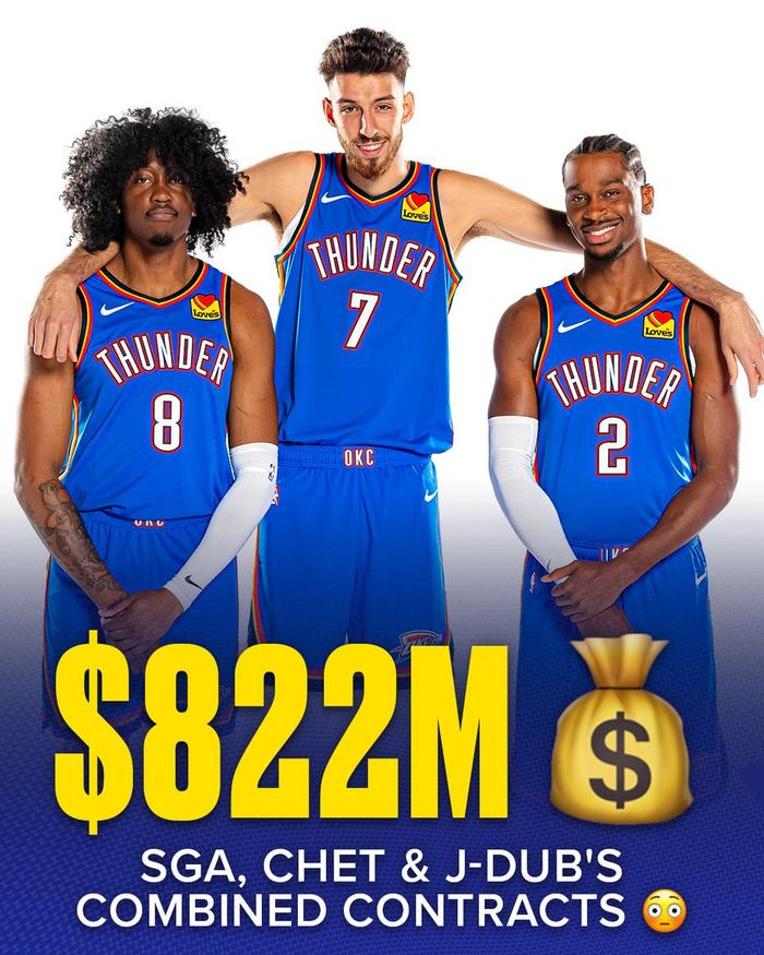 随便操作,都能签下一套全明星阵容,比如浓眉+利拉德+小加索尔+巴特勒+追梦,按当时他们续签的合同,总价是5.53亿左右,还能剩下5000多万签其他球员。这也足以说明雷霆花的这笔钱,有多么疯狂,放在10年前,扣除通胀率,同样是难以想象。